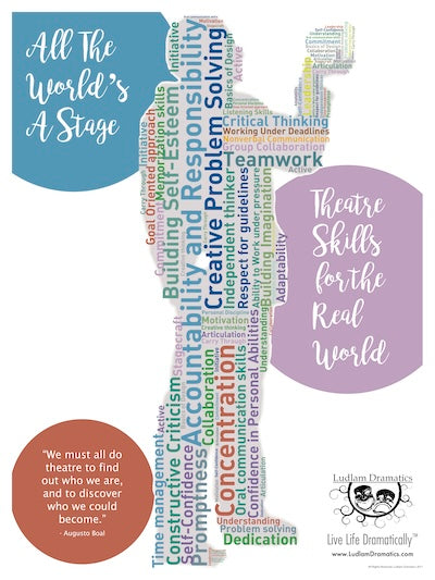 Our new Theatre Skills poster is an attractive word cloud image that describes the practical skills that are taught in Theatre and also used in the real world. Great for reminding the students, parents, and administrators of some of the "why" of Theatre Arts!